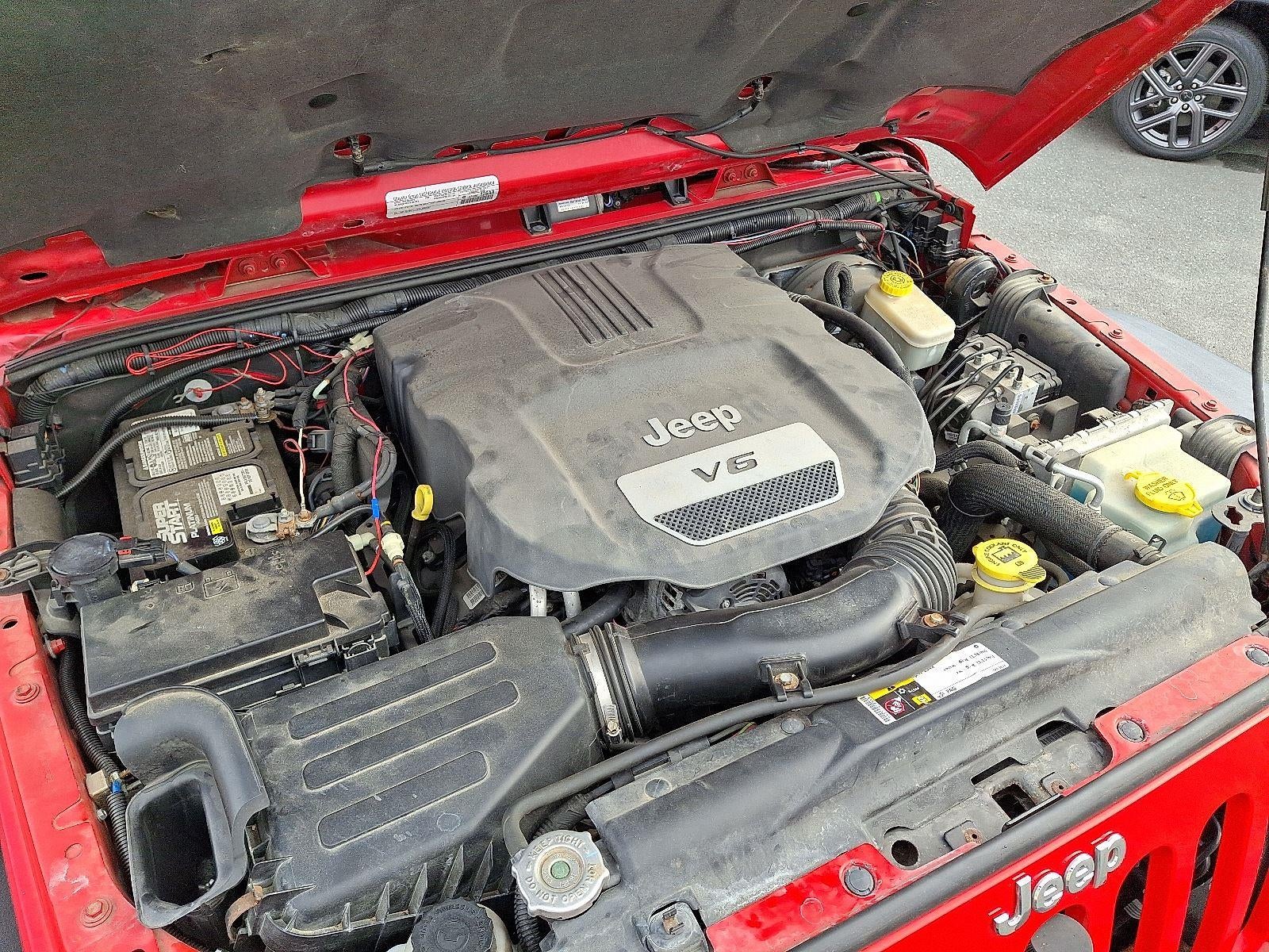 ENGINE: 3.6L V6 24V VVT, TRANSMISSION: 5-SPEED AUTOMATIC (W5A580), QUICK ORDER PACKAGE 24R, 3.73 REAR AXLE RATIO, FIRECRACKER RED CLEAR COAT, BLACK, CLOTH BUCKET SEATS, CONNECTIVITY GROUP, PREMIUM BLACK SUNRIDER SOFT TOP, RADIO: UCONNECT 430N CD/DVD/MP3/HDD/NAV, ALPINE 9-SPEAKER W/ALL WEATHER SUBWOOFER, REMOTE START SYSTEM, MANUFACTURER'S STATEMENT OF ORIGIN