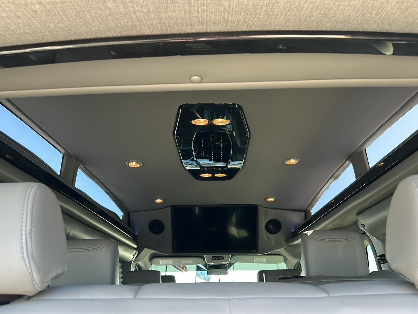 - EXPLORER LIMITED SE 9-PASSENGER HIGH TOP CONVERSION VAN, INTERIOR LIGHTING, VIZIO TV, QUILTED LEATHER, 9-PASSENGER SEATING WITH POWER FOLD/SLIDE REAR SOFA