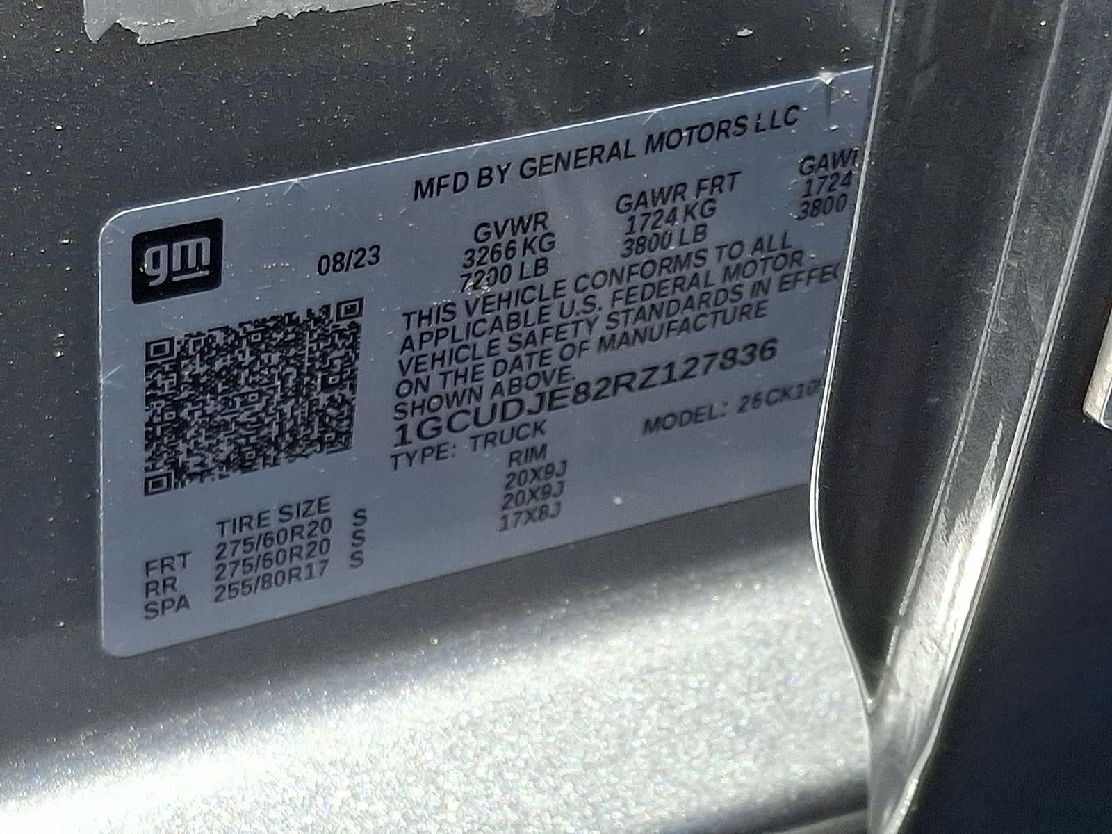EMISSIONS, FEDERAL REQUIREMENTS, ENGINE, DURAMAX 3.0L TURBO-DIESEL I6, TRANSMISSION, 10-SPEED AUTOMATIC, GVWR, 7200 LBS. (3266 KG), REAR AXLE, 3.23 RATIO, WHEELS, 20"" X 9"" (50.8 CM X 22.9 CM) MACHINED ALUMINUM, TIRES, 275/60R20SL ALL-TERRAIN, BLACKWALL, SEATS, FRONT BUCKET, JET BLACK/UMBER, PERFORATED LEATHER SEATING SURFACES, AUDIO SYSTEM, CHEVROLET INFOTAINMENT 3 PREMIUM SYSTEM, TECHNOLOGY PACKAGE, Z71 OFF-ROAD PACKAGE, ENGINE BLOCK HEATER, HILL DESCENT CONTROL, AIR FILTER, HEAVY-DUTY, ALTERNATOR, 220 AMPS, SKID PLATES, ASSIST STEPS, POWER-RETRACTABLE, LICENSE PLATE KIT, FRONT, STEERING WHEEL, SPORT WRAPPED, STEERING COLUMN LOCK, ELECTRICAL, MULTICOLOR 15"" DIAGONAL HEAD-UP DISPLAY, SUPER CRUISE, REAR CAMERA MIRROR, INSIDE REARVIEW AUTO-DIMMING