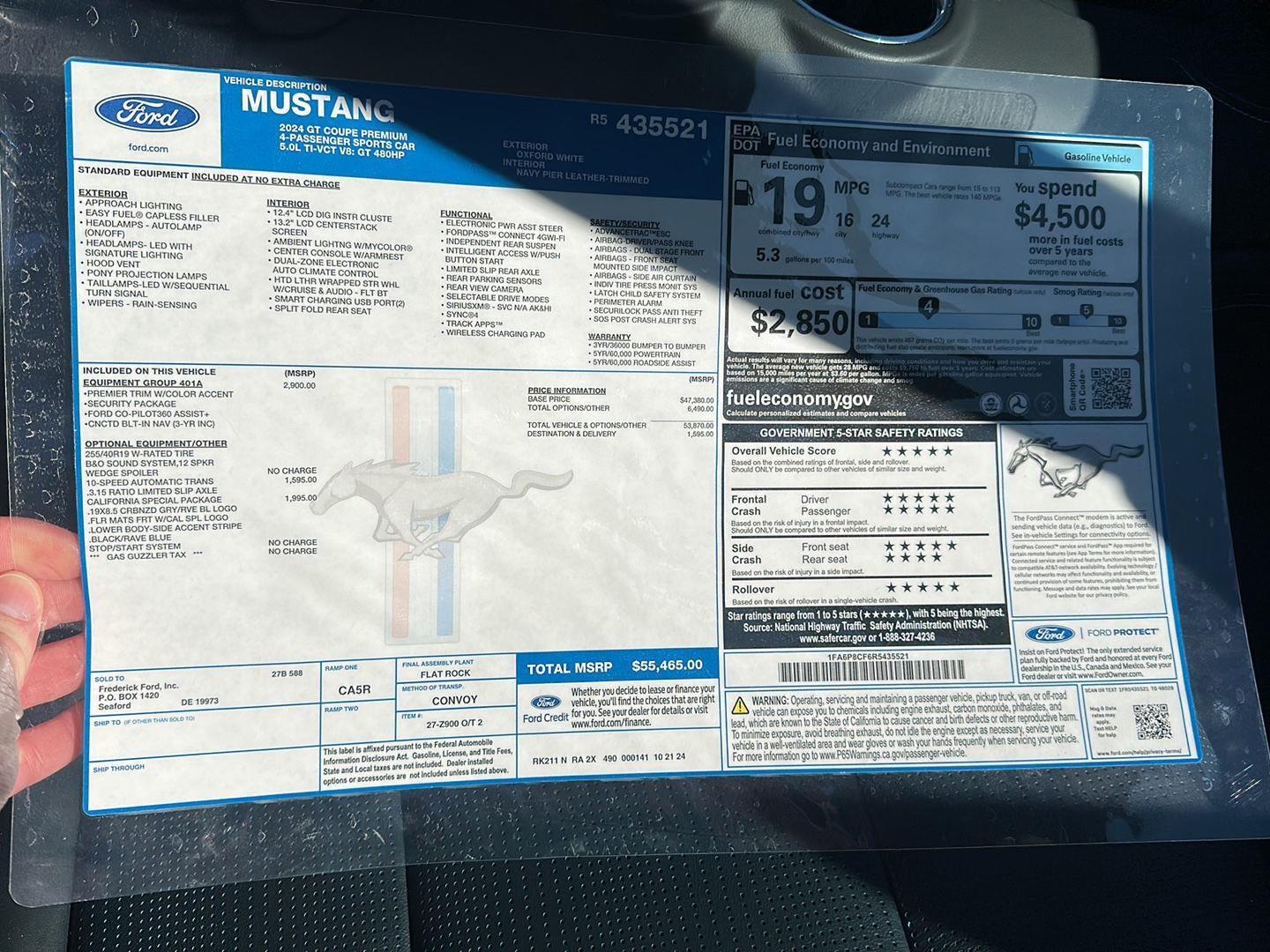 ENGINE: 5.0L TI-VCT V8, OXFORD WHITE, NAVY PIER, LEATHER BUCKET SEATS
